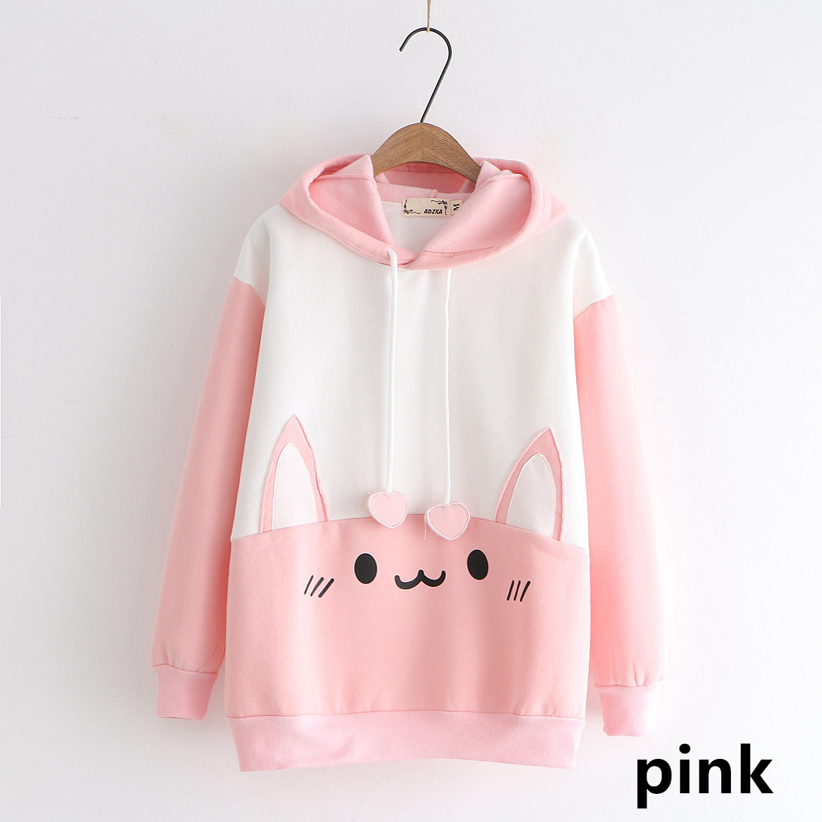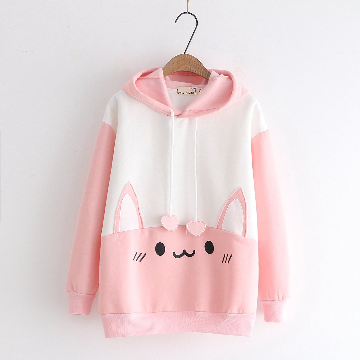 Cartoon cute rainbow print stitching fake two hooded sweaters