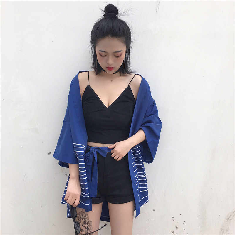 Fabric: cotton color: blue Size: Free Size Length: 78cm, Bust: 124cm, Sleeve Length 19cm, Shoulder 62cm,