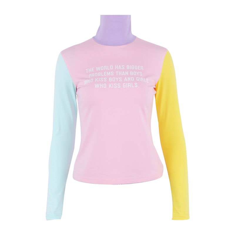 New stylish pink stitching high collar T-shirt bottoming shirt