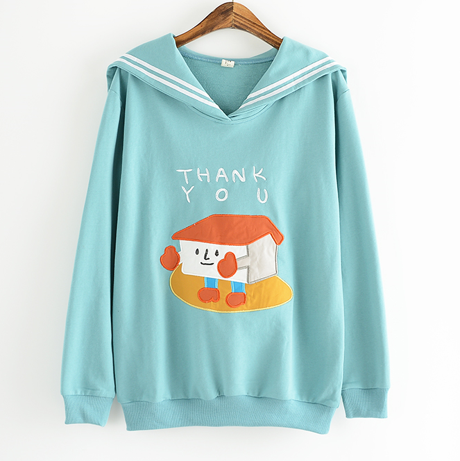 Embroidered kitten cozy V-neck preppy long-sleeved sweater