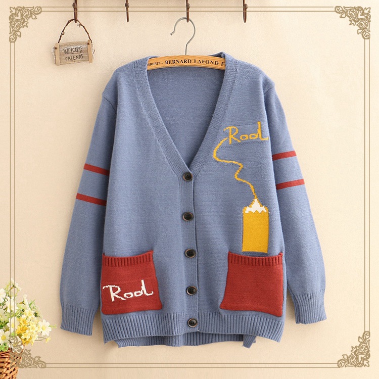 New personality color matching rool cardigan sweater