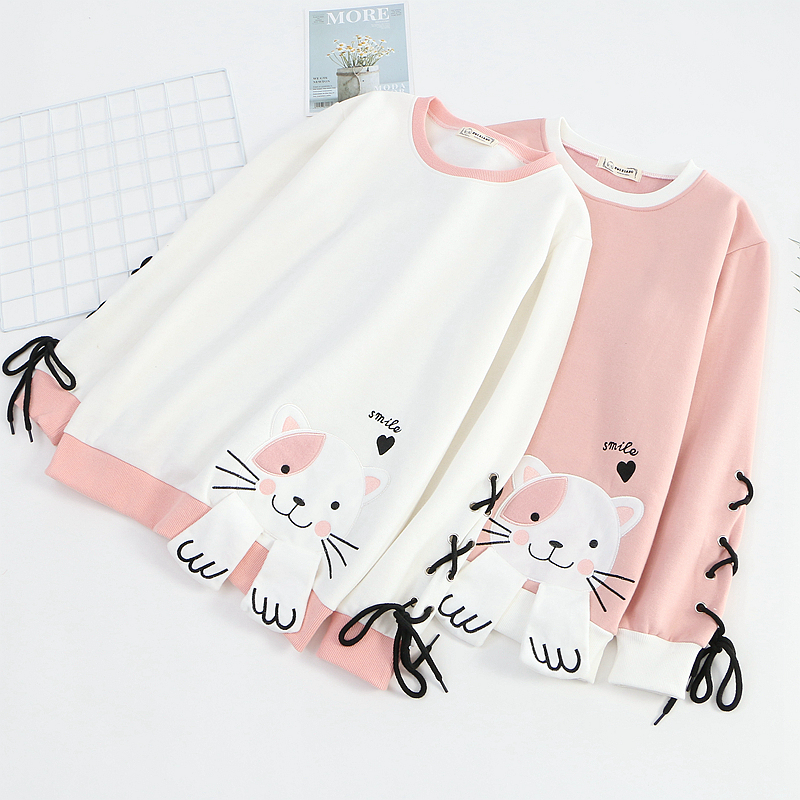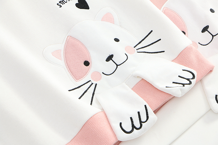 Cute cat embroidered plus velvet warm sweater