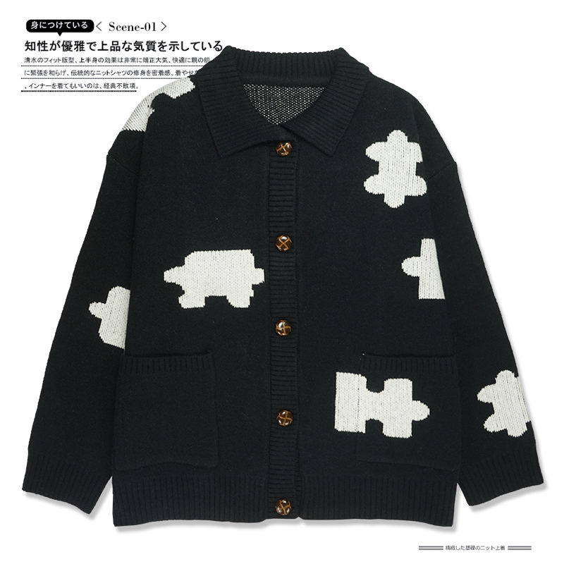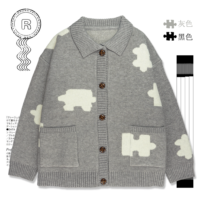 New Planet Pinecone Button Lapel Puzzle Sweater Cardigan Jacket