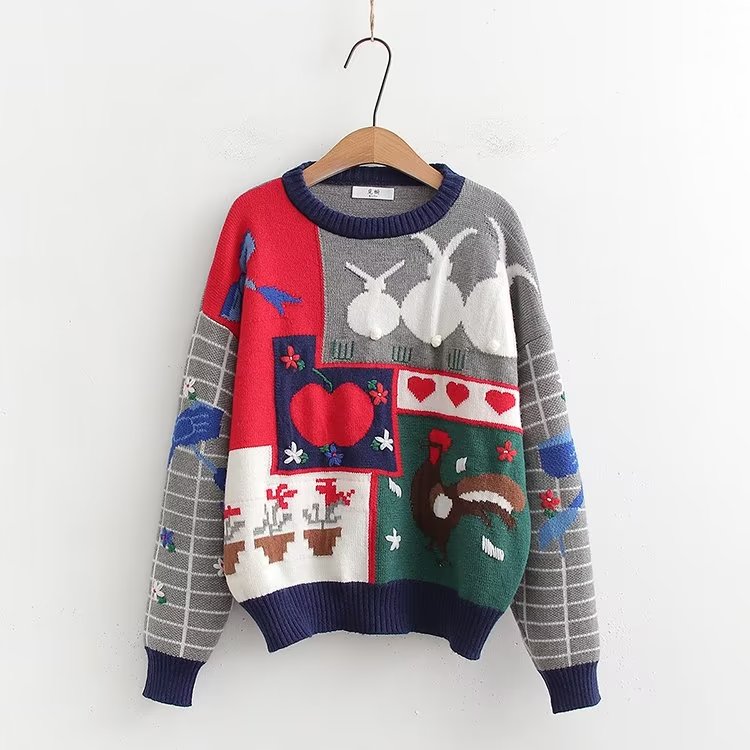 New heavy-craft jacquard three-dimensional embroidery contrast color sweater