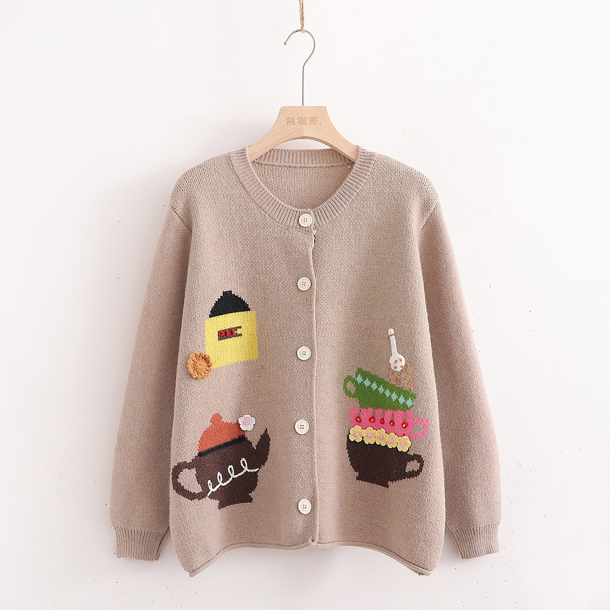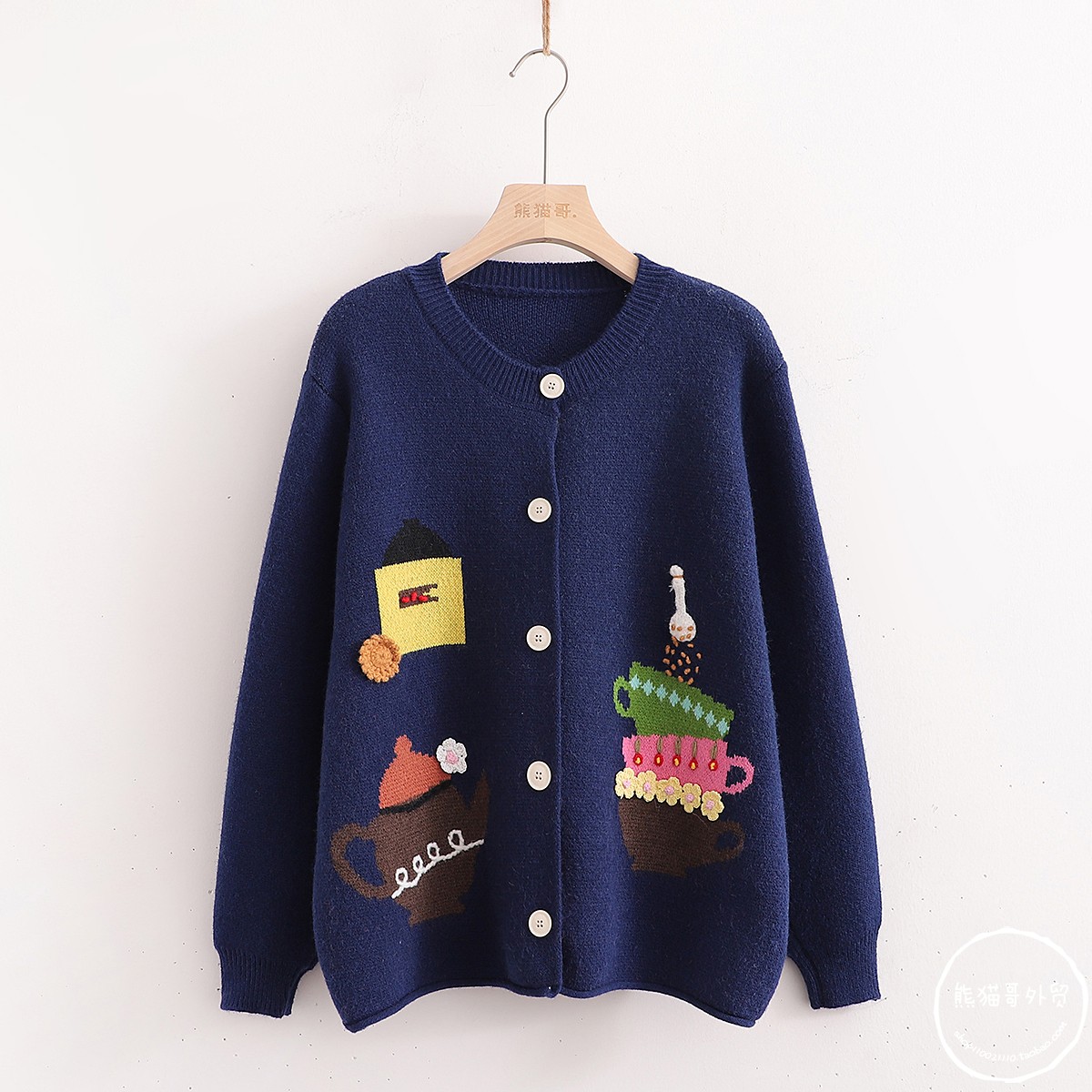 New color contrast embroidery retro lazy heavy crochet cardigan