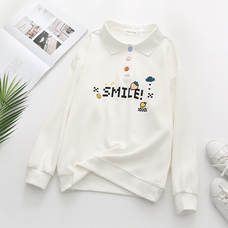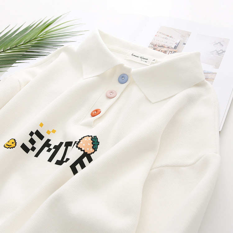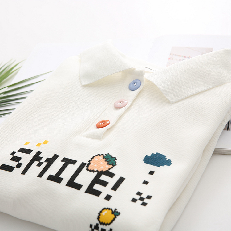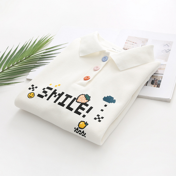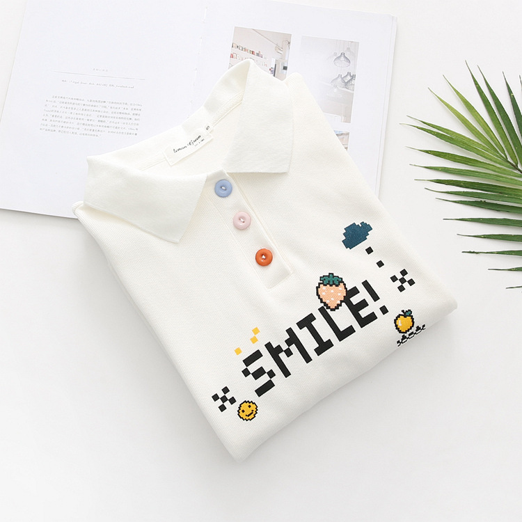 Cute college style girl polo shirt student lapel white sweater top