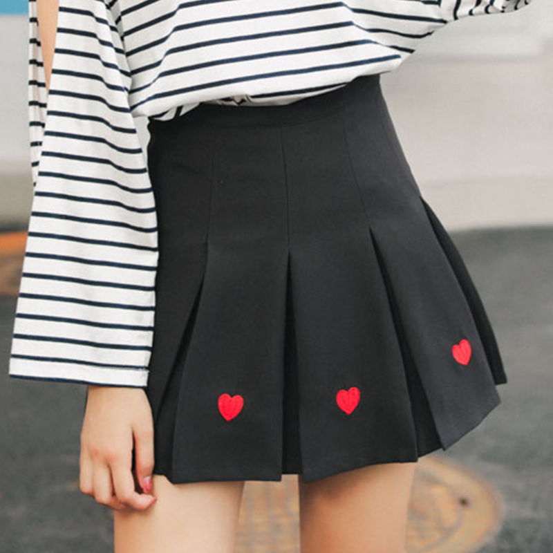 Cute Preppy Pleated Skirt Anchor Embroidery Belt Versatile Sailor Skirt