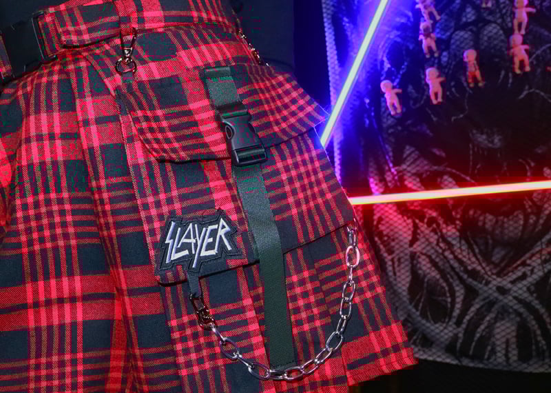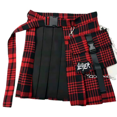Plaid irregular skirt trousers chain pocket pleated skirt