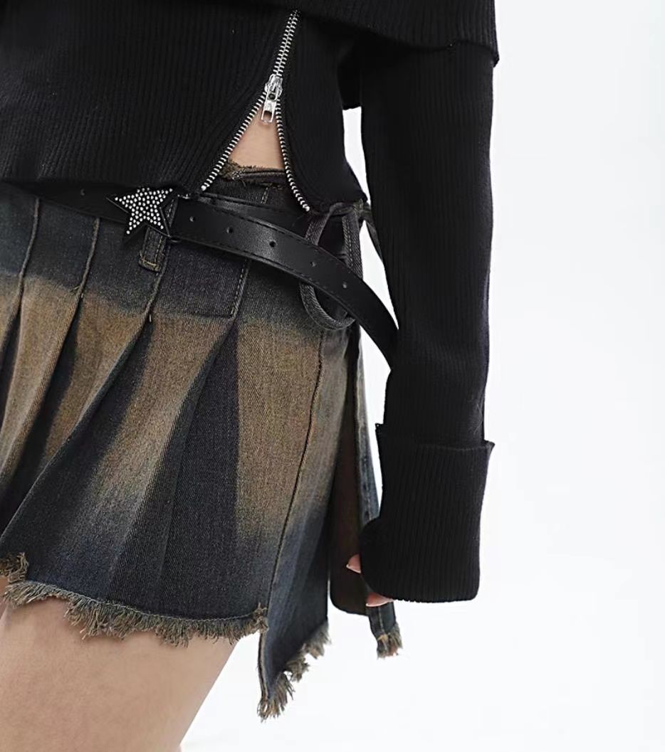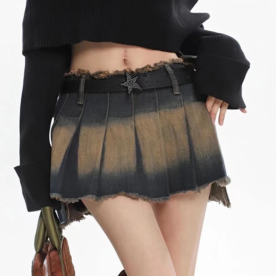 2023 Y2k Skirt Women Mini Skirts Korean Style Streetwear Hot Girl Fashion Vintage Outfits Sexy Denim Distress Irregular Pleated