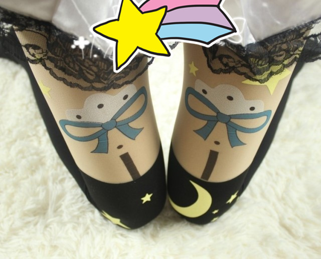 Harajuku Star Moon cat stitching bottoming socks pantyhose stockings