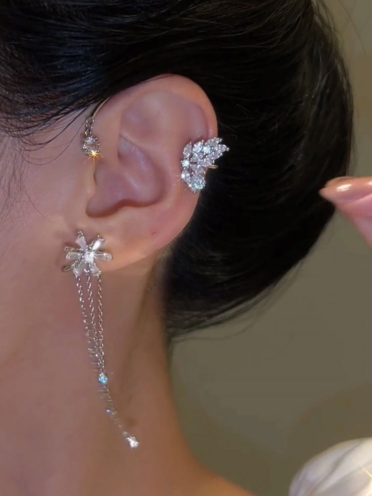 New diamond moon earrings ear cuffs without pierced high-end tassel style ear cuffs