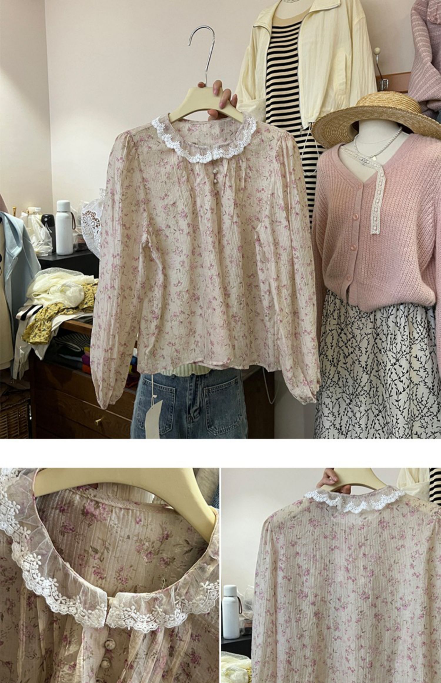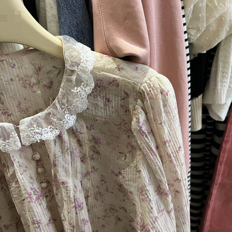 New trendy lace edge country style chiffon top