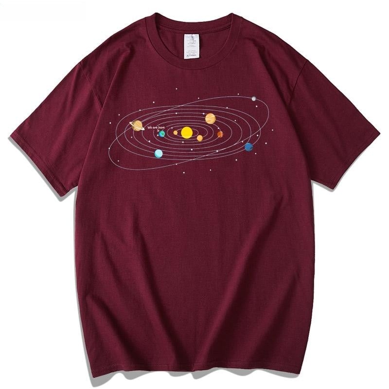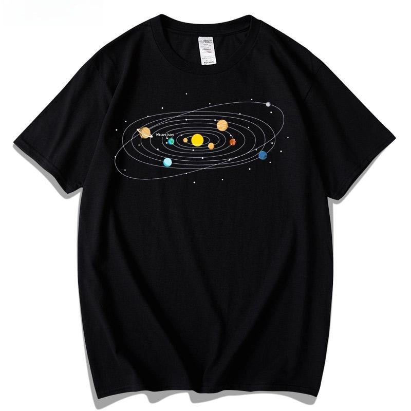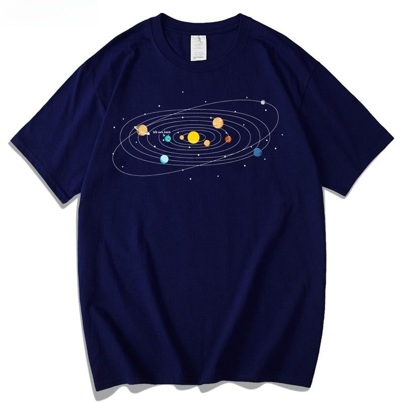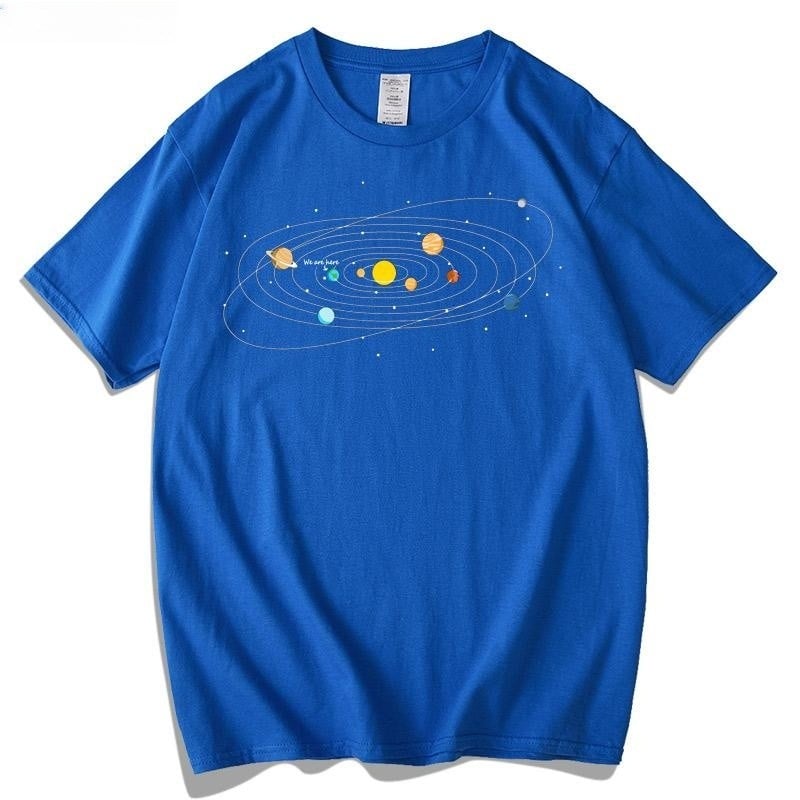 Universe interstellar space planet Earth Mars solar system star print short-sleeved shirt