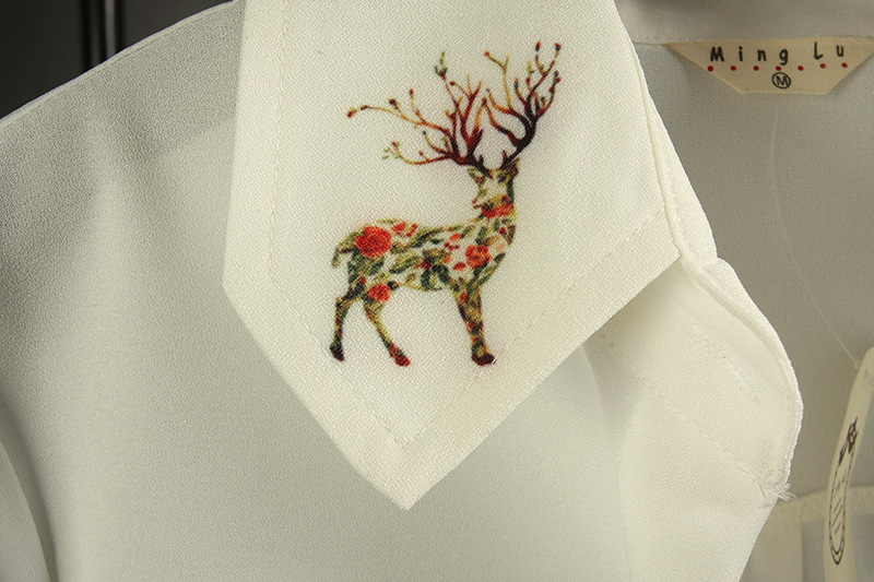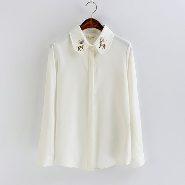 Sweet and fresh lapel embroidered pleated versatile loose long-sleeved blouses