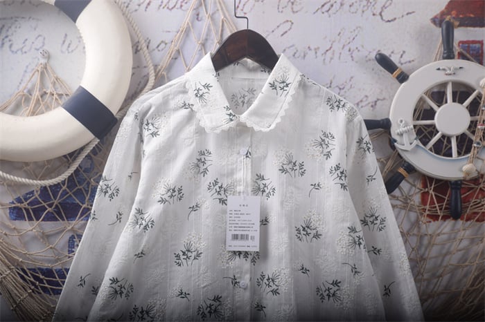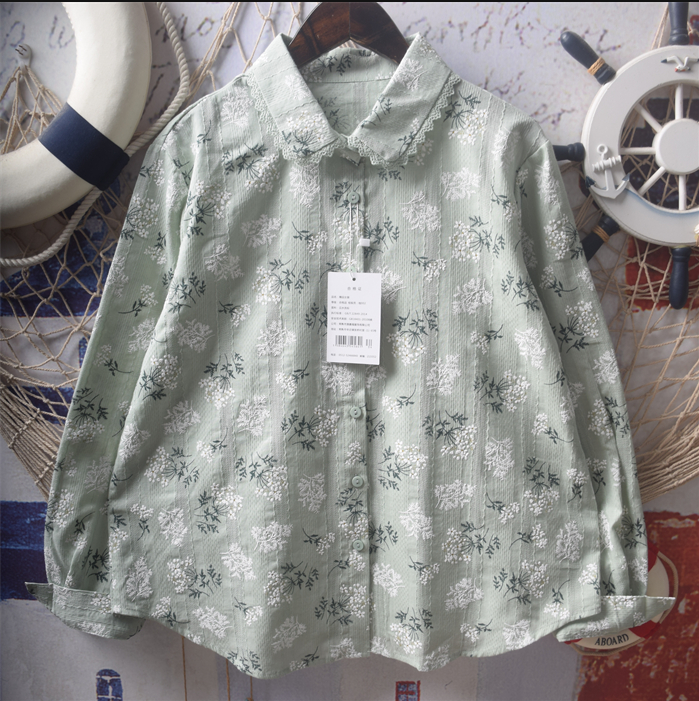 New oil painting flower print long-sleeved top blouses