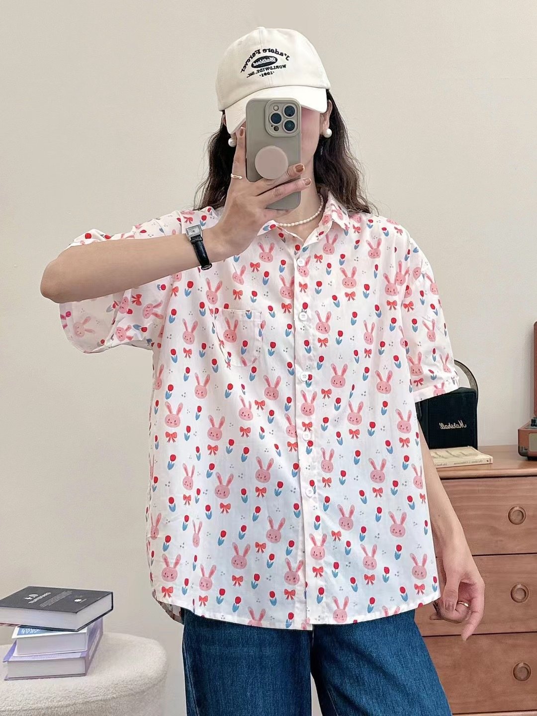 Cute and sweet lapel pocket casual short-sleeved blouses