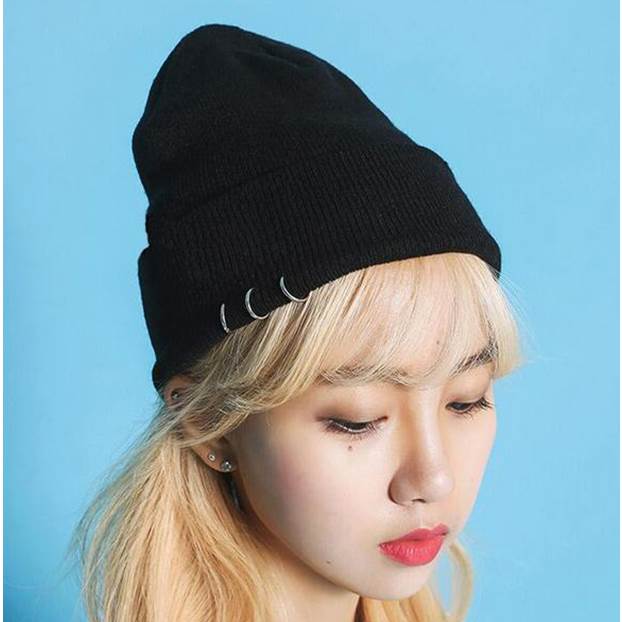 Fashion iron ring knit hat wool cap