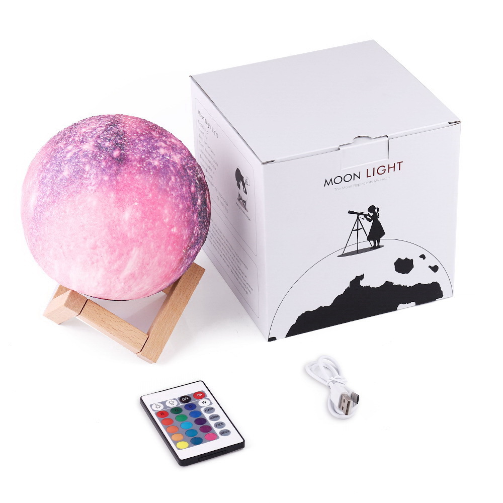 Creative starry moon light 3D printing moon light romantic remote control night light
