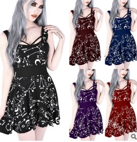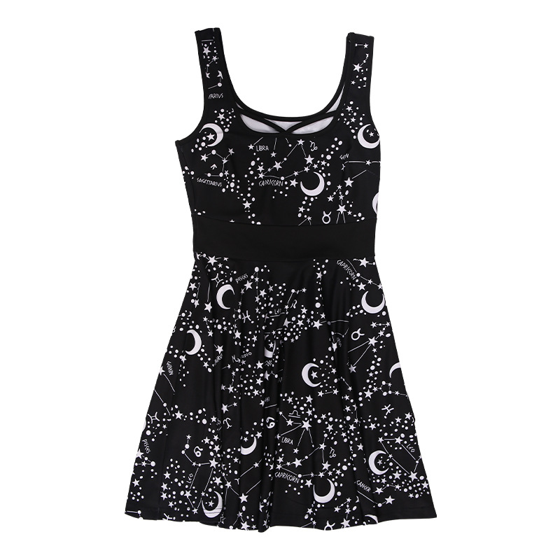Personality Sleeveless Star Print Slim Strap Sling Irregular Dress
