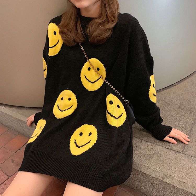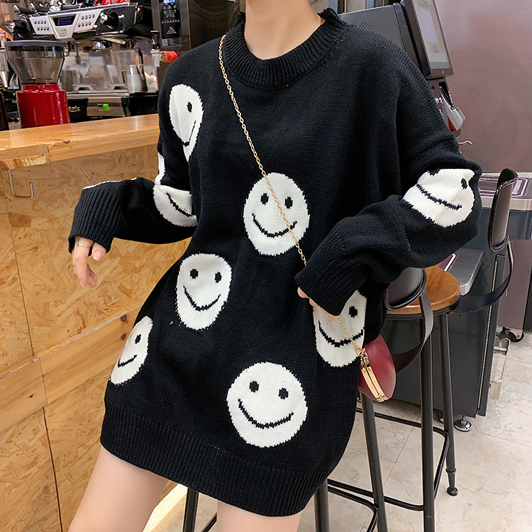 New smiley loose lazy wind long autumn and winter sweater jacket