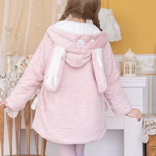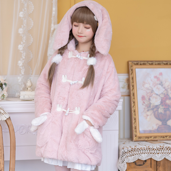 Cute rabbit ear horn button plush coat