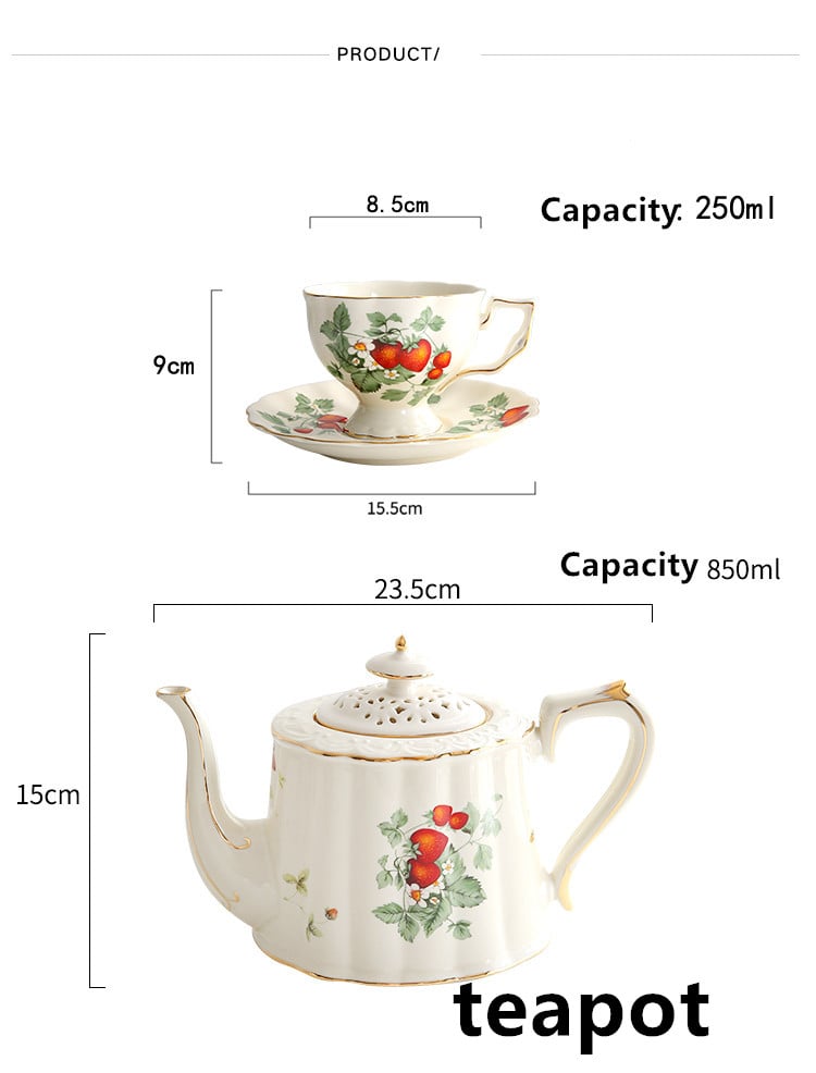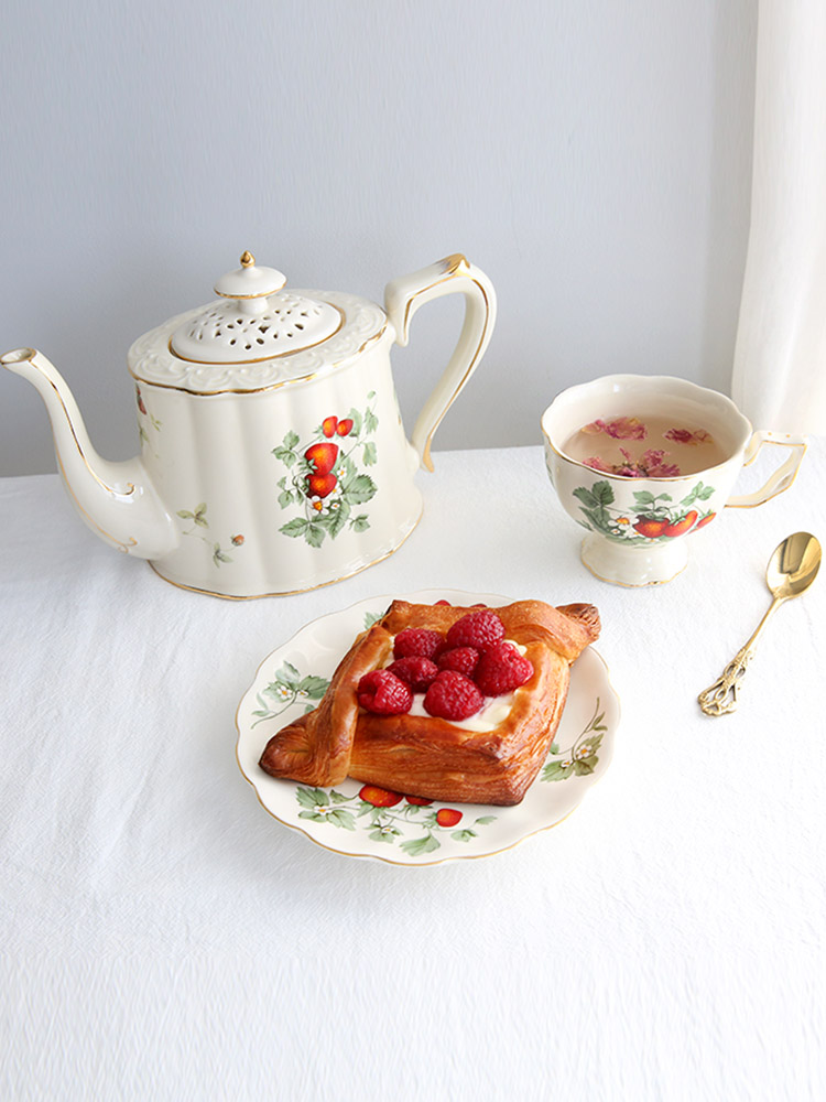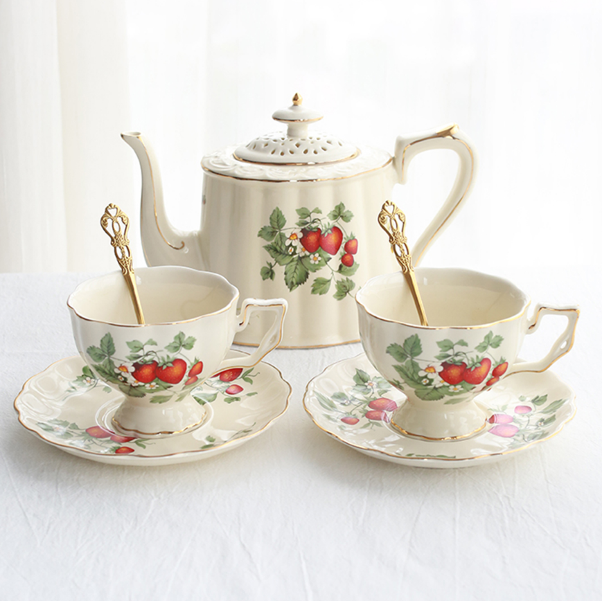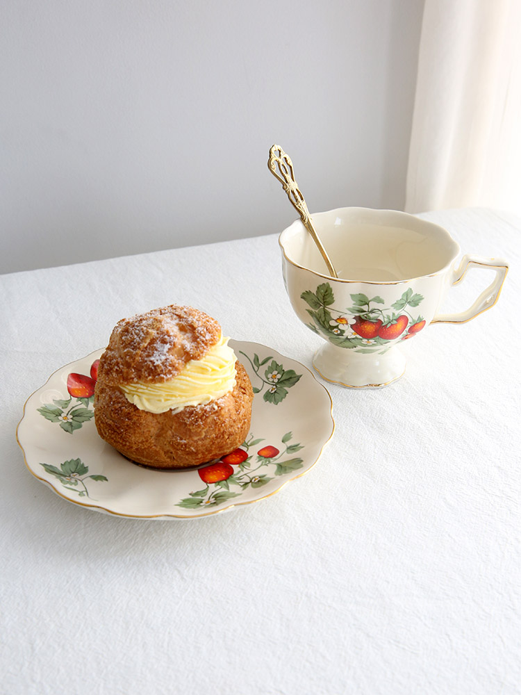 British retro cream wild strawberry ceramic coffee cup saucer afternoon tea black tea cup