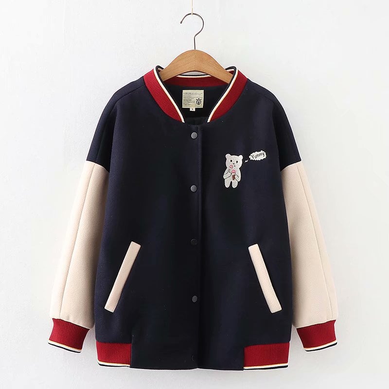 Winter Wool Thickened Warm Jacket Baseball Uniform Versatile Embroidered Color Matching Jacket
