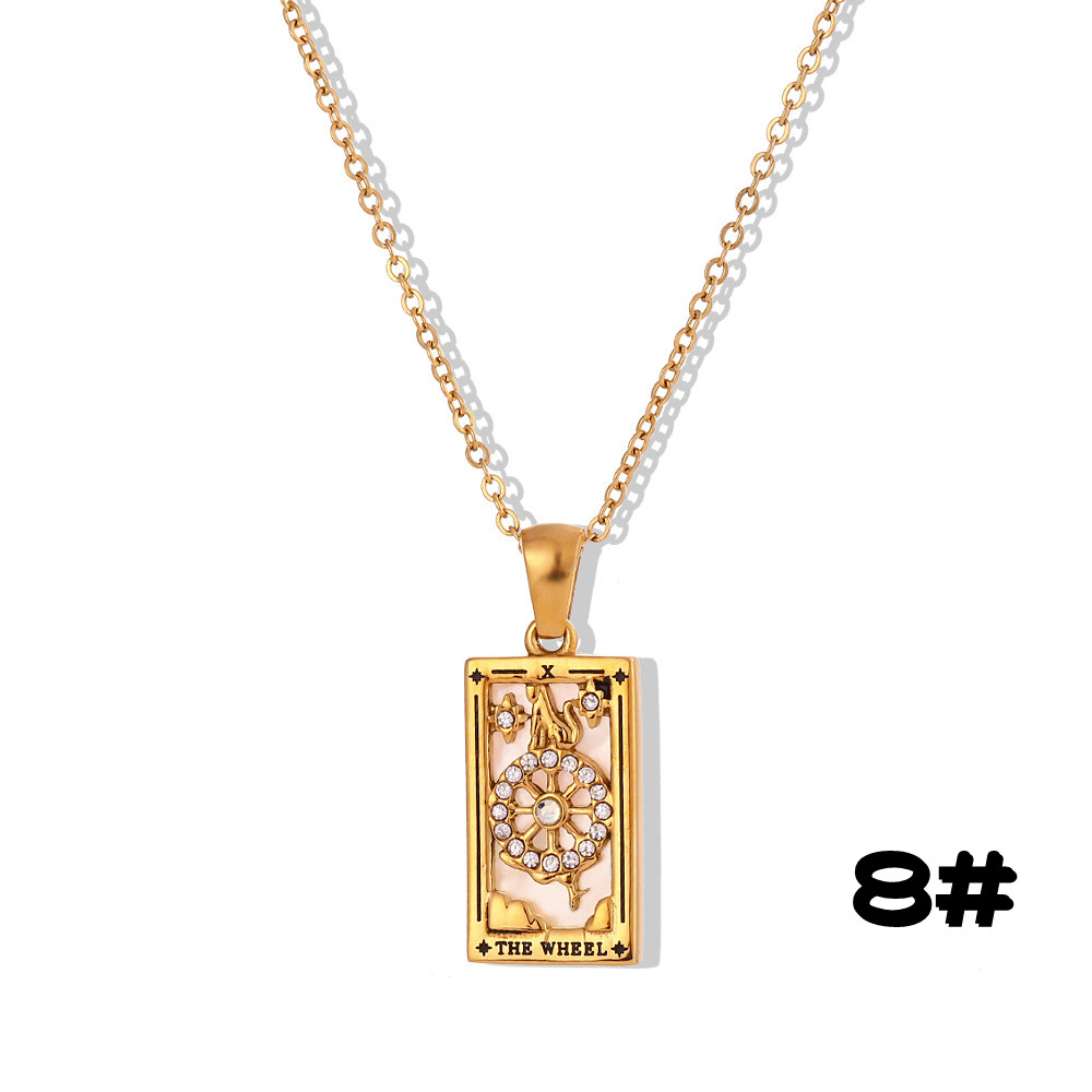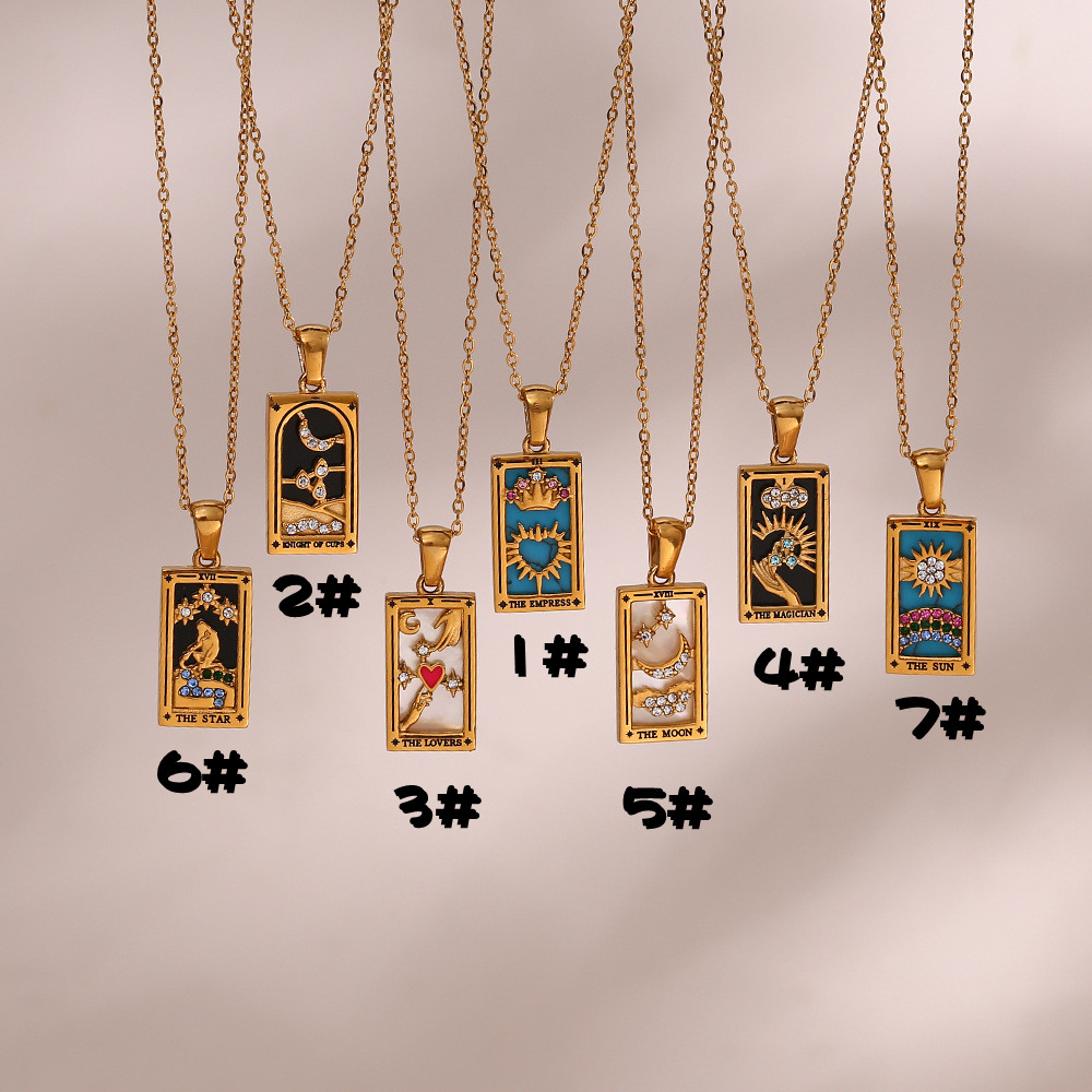 Freeshipping Fashion Retro Popular Stainless Steel Rectangular Oil Drip Zircon Tarot Card Necklace