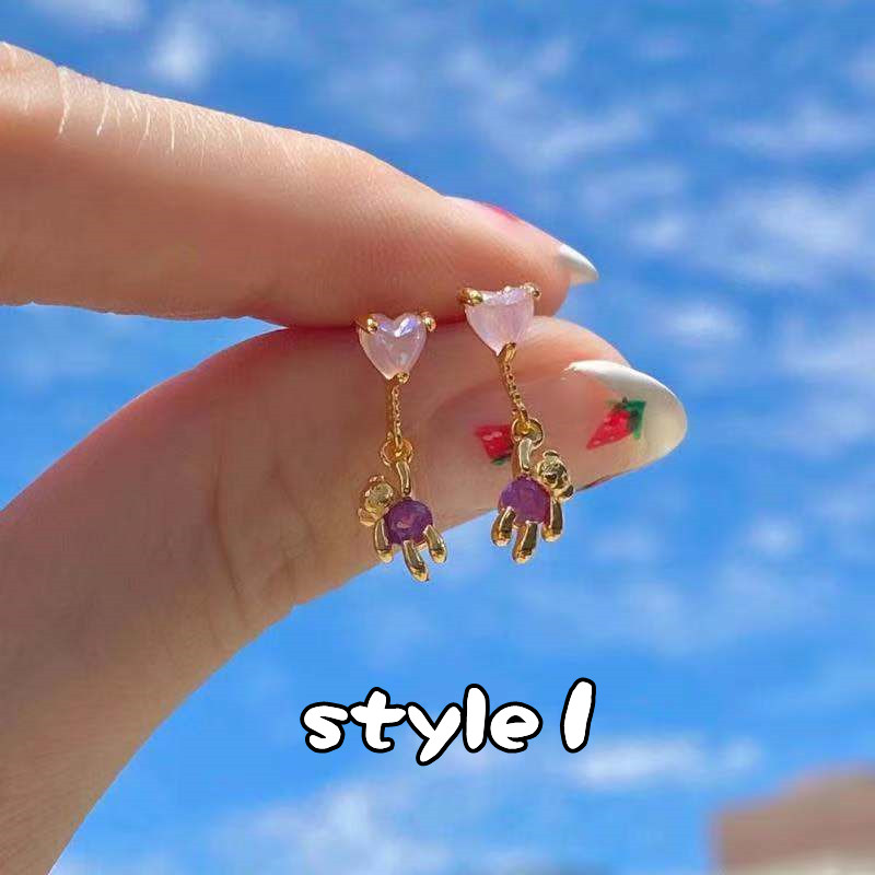 Cute Bear Cloud Stud Earrings Tassel Earrings