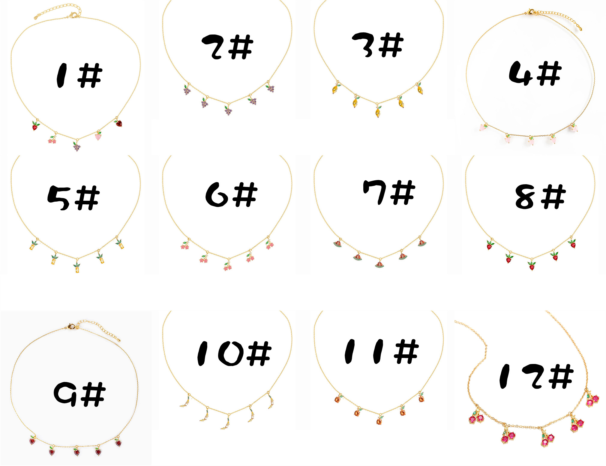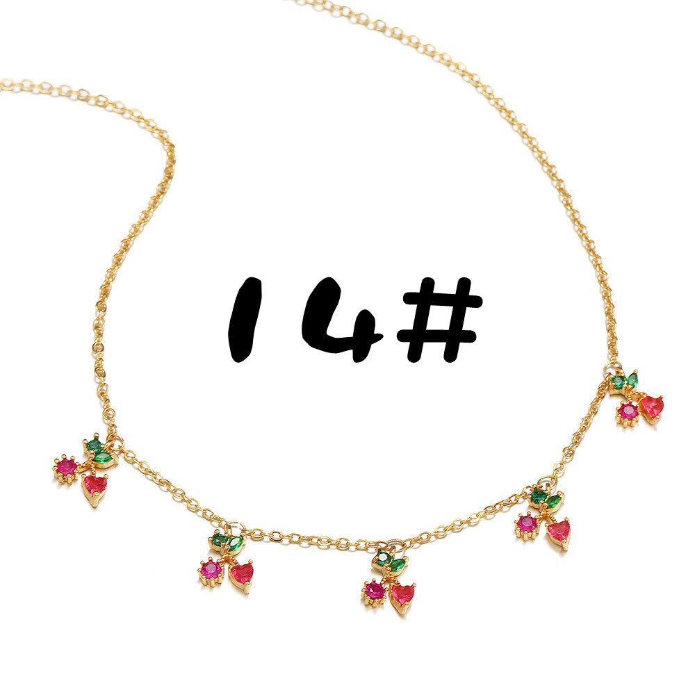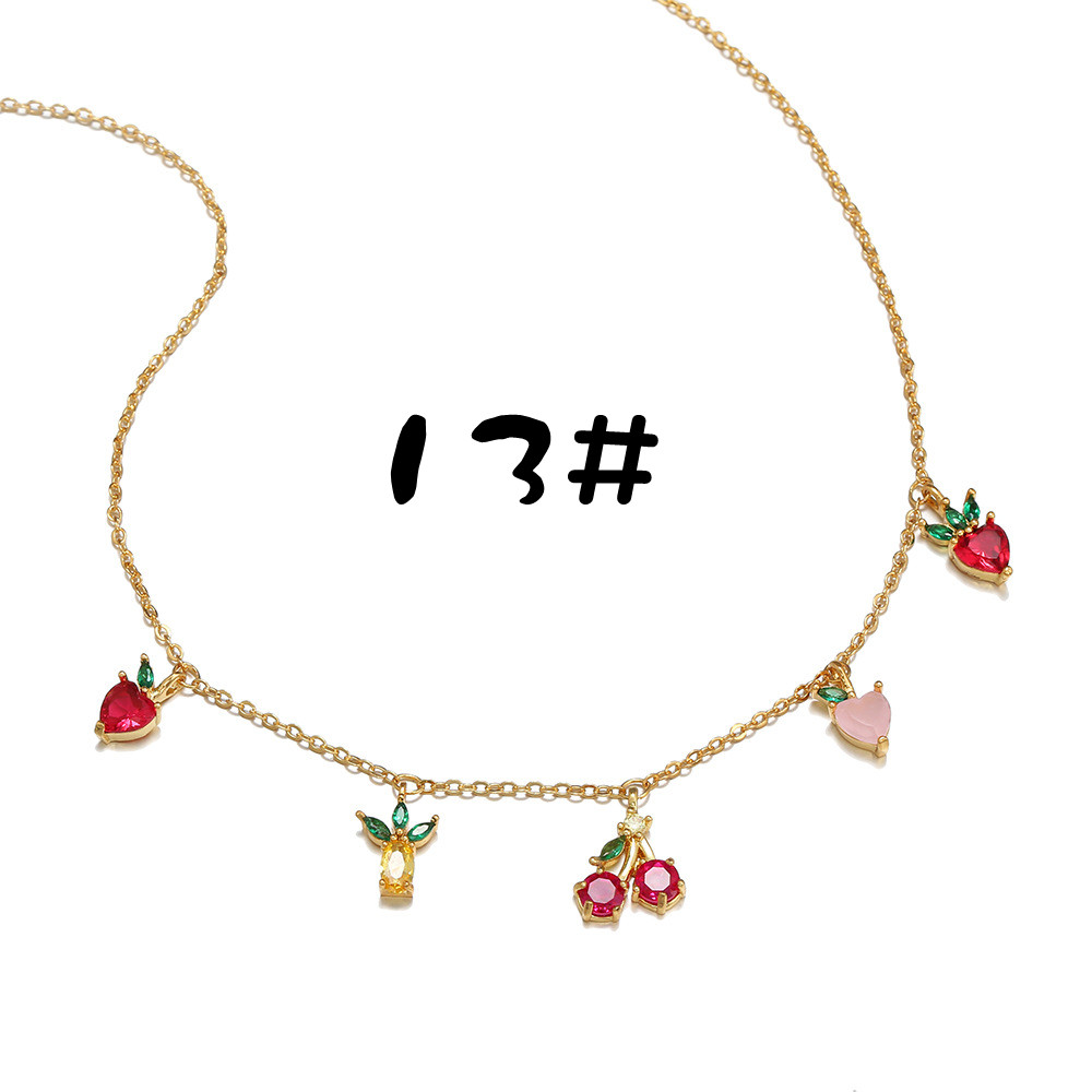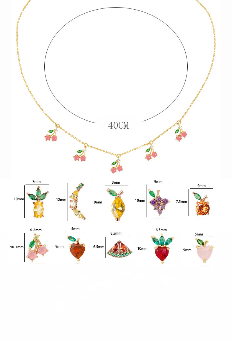 Colorful Zircon Necklace Cherry Peach Tropical Fruit Clavicle Chain Necklace