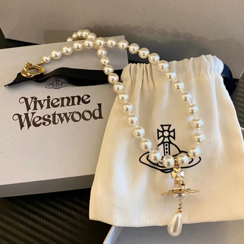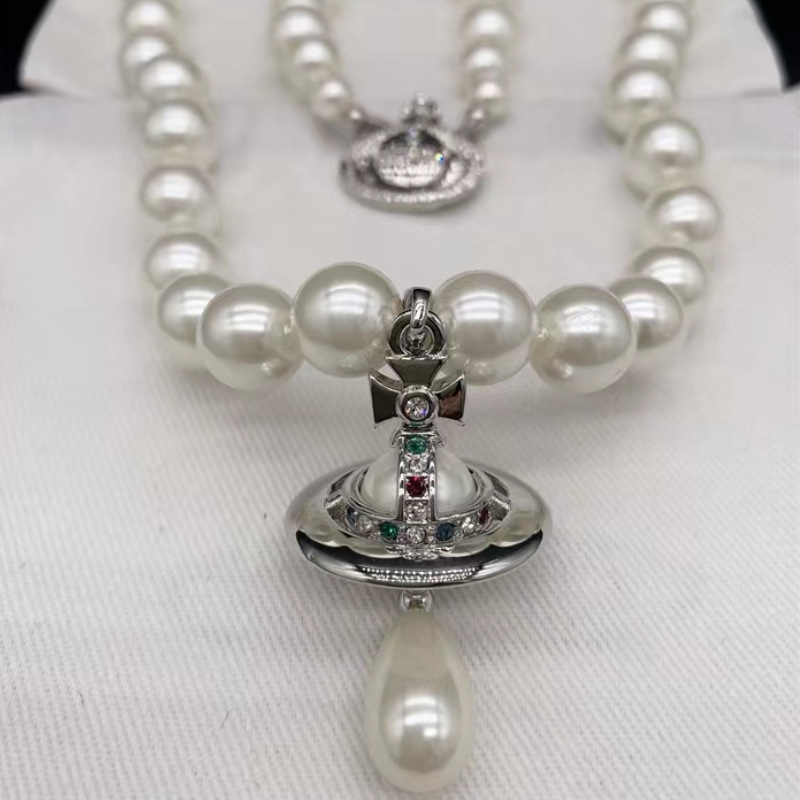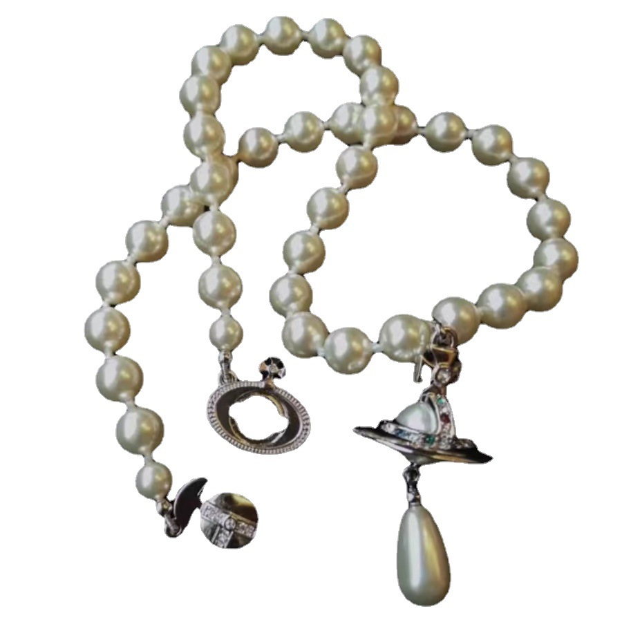Vintage Water Drop Pearl Chain Three-dimensional Saturn Necklace