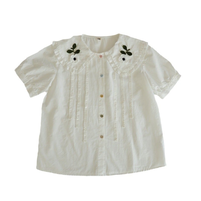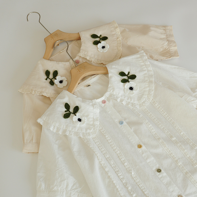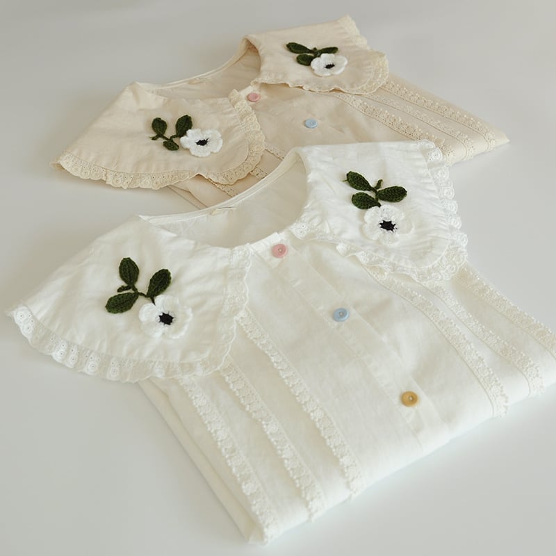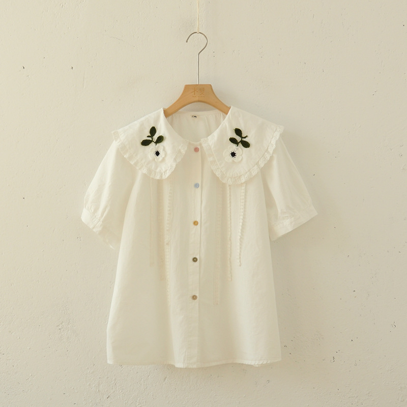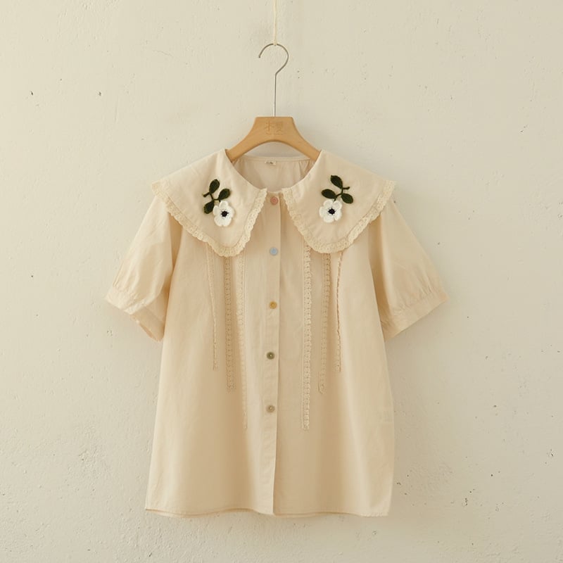 College style three-dimensional flower lace all-match loose short-sleeved blouses