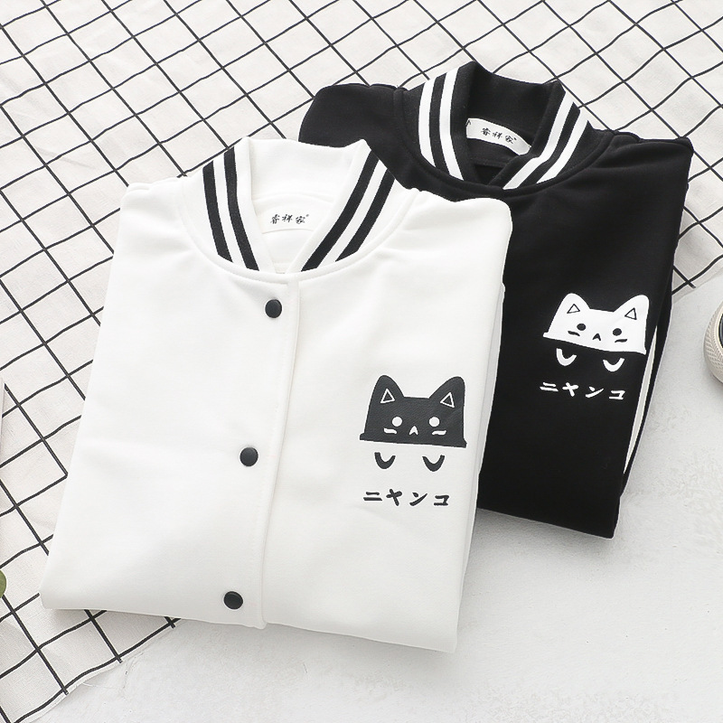 Cartoon printing Japanese cat black and white splicing cartoon baseball uniform