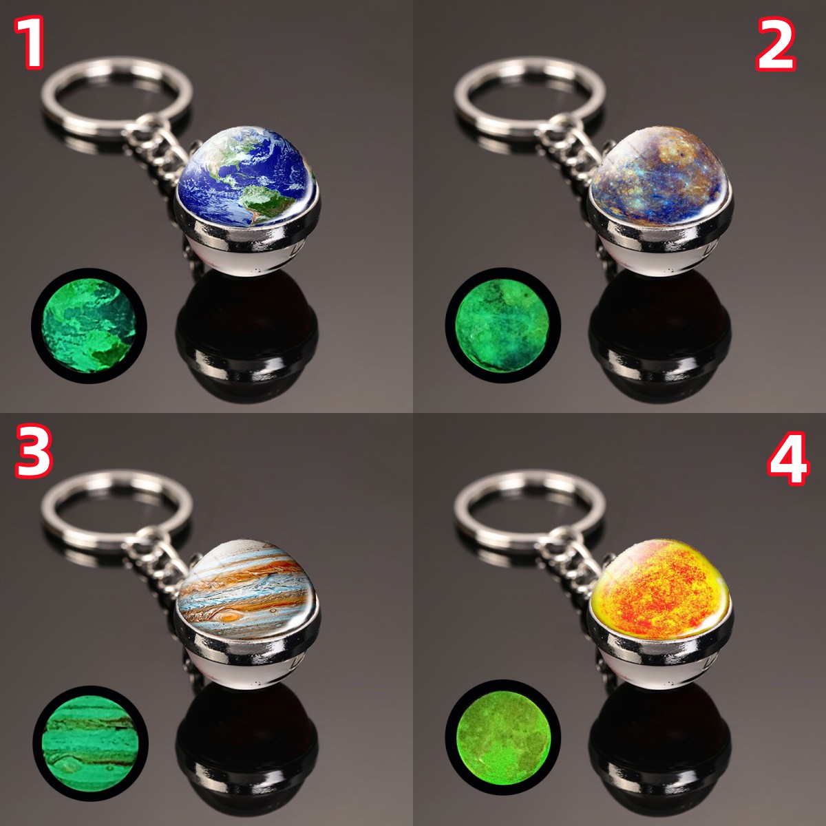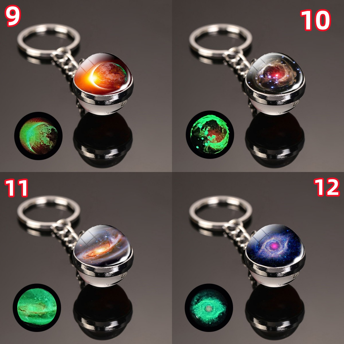 Luminous universe planet key chain solar system metal pendant galaxy nebula earth double-sided glass ball key chain
