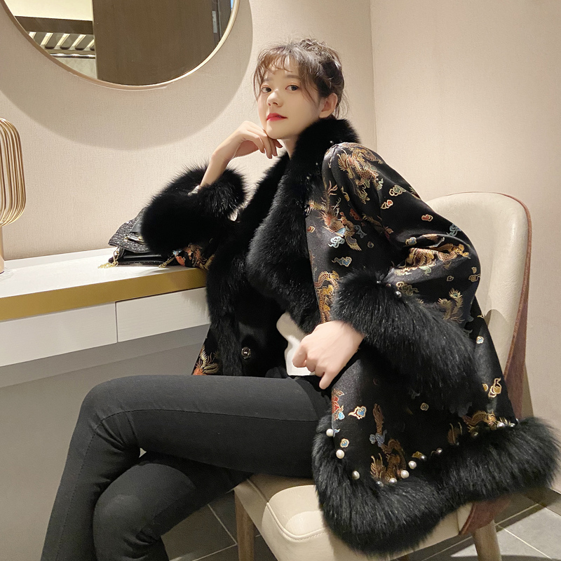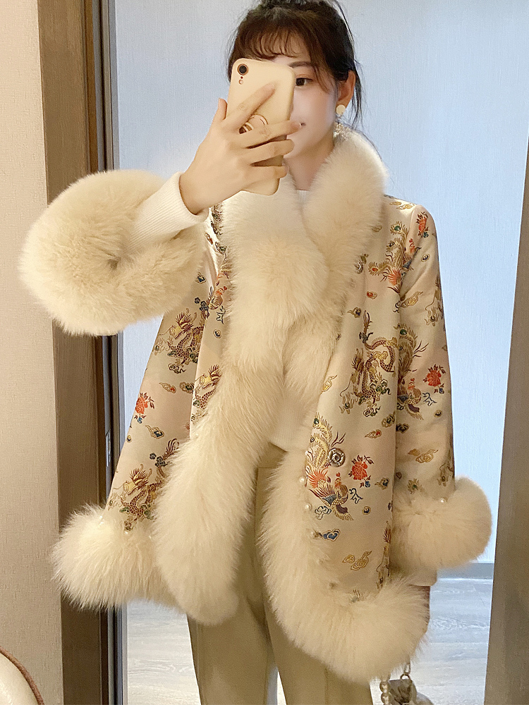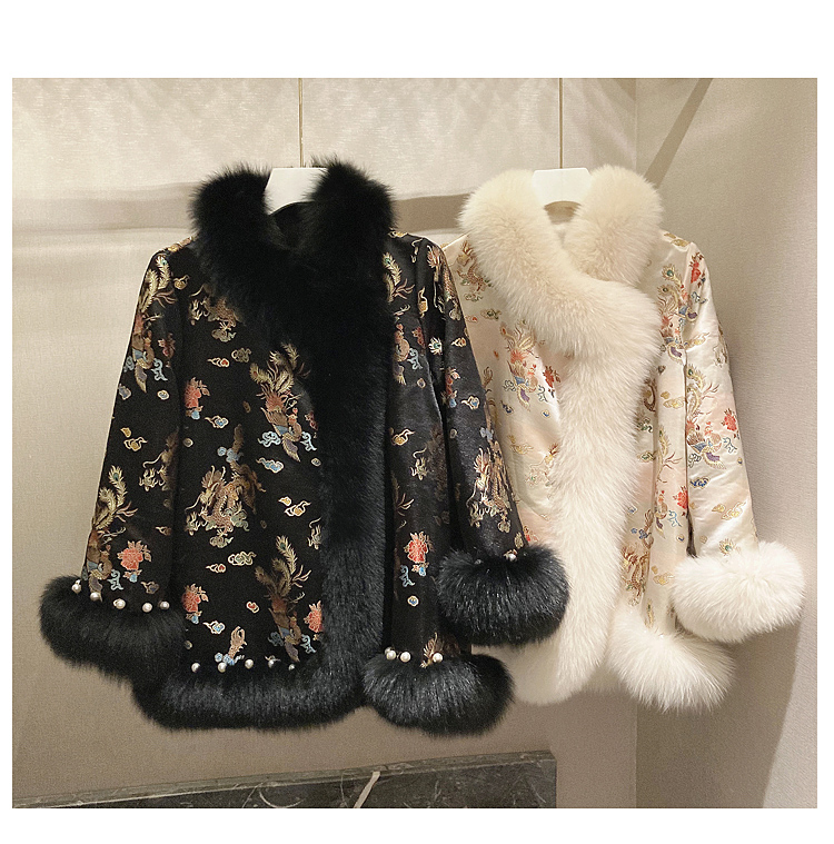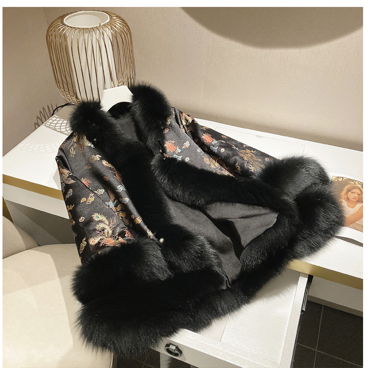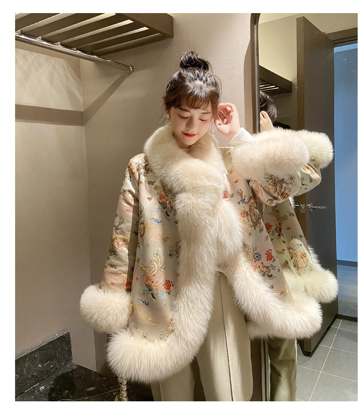 New embroidered shawl cropped beaded imitation fox fur cape coat