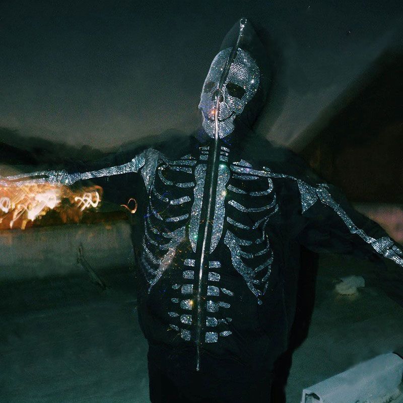 Skull Iron diamond fashion casual loose coat Halloween hoodie